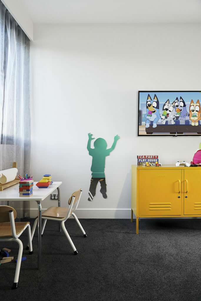 For the ultimate family room, we have the Kids Studio that interconnects to the East Apartment. This room is known as the Kids Cubby! Fitted out with a set of bunk beds, a kids’ play table, dining table, play rug and bean bags with the ultimate Xbox One for loads of fun and games.